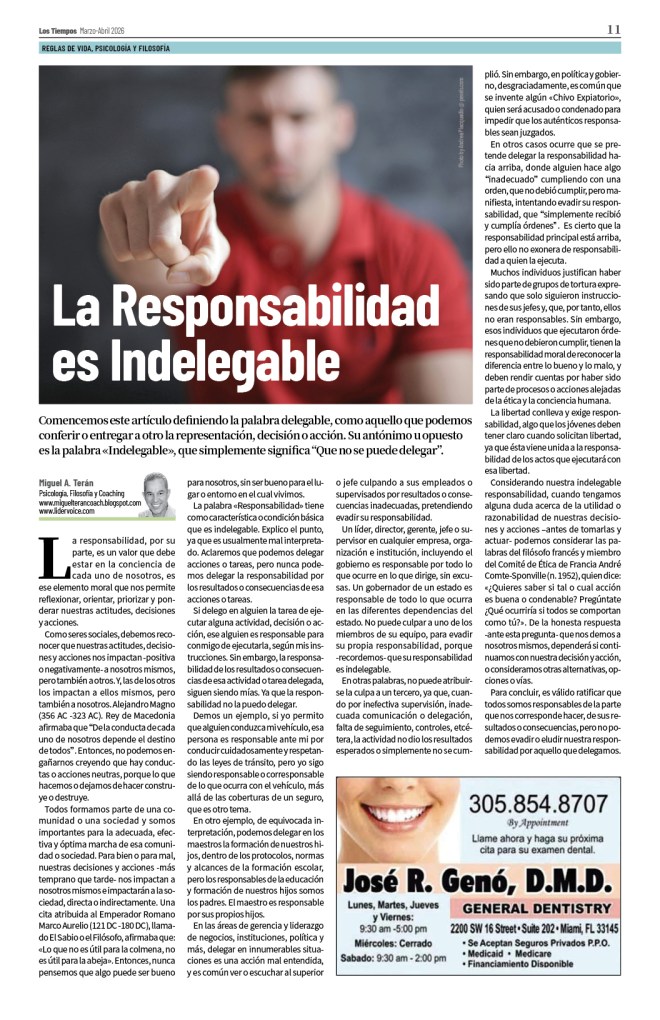 Artículo publicado en Los Tiempos Newspaper, Miami, FL. USA – Mar -Abr 2026